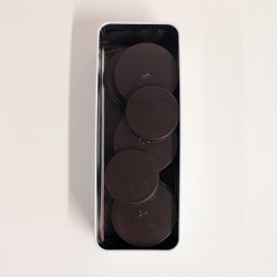 Chocolat noir 64 % pâte de cacao, beurre de cacao, sucre, émulsifiant E 322 lécithine de tournesol, arôme vanille naturelle.